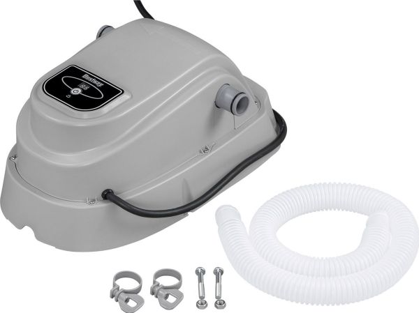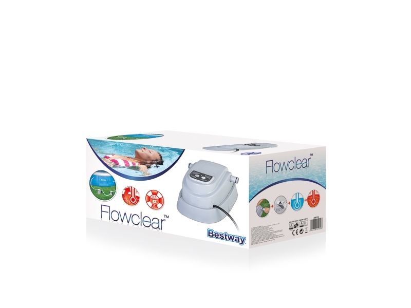 If taking a dip in the water makes your toes turn blue, then the Bestway® Pool Heater is an absolute essential. The Pool Heater is a simple and effective way to warm up water in your above ground pool, creating a comfortable and relaxing environment to swim or play in. The electric pool heater has two hose outlets, one of which connects it to a filter pump and the other to your above ground pool. Clear, clean and pristine water is pumped into the above ground pool heater via the filter pump, where it’s then heated and pumped back into the pool. The swimming pool heating system is compatible with filter pumps and sand filters with a flow rate of 3,785 L (1,000 gal.) or less. The digitally-controlled Pool Heater with soft-touch control panel has a maximum heater output of 40°C (104°F). It’s one of many products designed to enhance your above ground pool experience in the Bestway® Pool Accessories collection. Digitally controlled heater with a soft-touch control panel Maximum heater output: 40˚C (104˚F) Compatible with filter pumps with flow rates of 3,758 L (1,000 gal.) and below Compatible with above ground pools with water capacities between 1,520-17,035 L (400-4,500 gal.) Contents: 1 pool heater