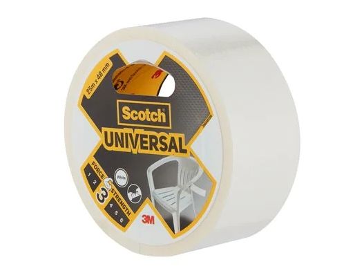 Das Scotch® Universal Klebeband, weiß (25 m x 48 mm), ist ein starkes Mehrzweck-Klebeband für schnelle und zuverlässige Verbindungen. Dadurch eignet es sich für viele alltägliche Reparaturen und Projekte. Es kann mit beinahe jedem Markierstift beschriftet werden und ist leicht per Hand abreißbar.