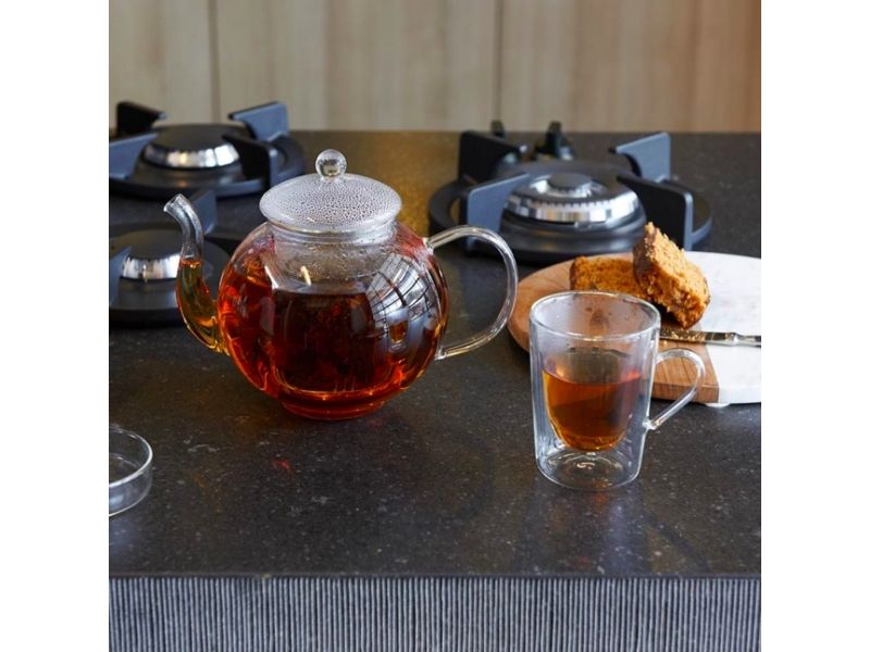 Elegant, single-walled glass teapot, including tea filter, suitable for loose tea. A corresponding tea light and tea filter holder are separately available.