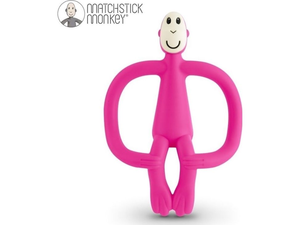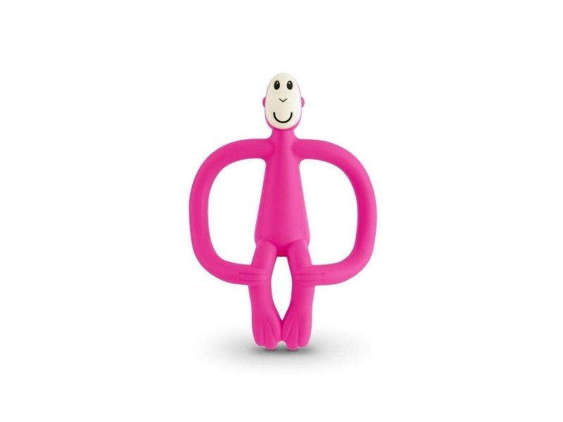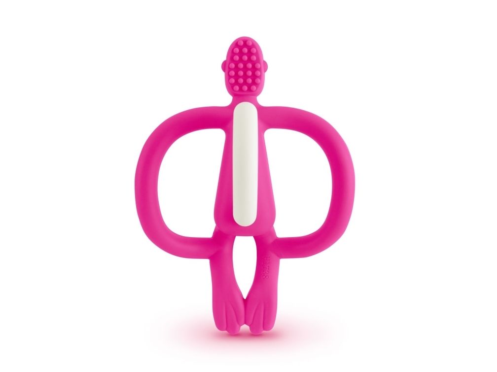 Rosa Affe-Beißring mit kleinen Höckern zum Üben des Zähneputzens und zur Massage des Zahnfleisches, spülmaschinen- und gefrierfest, Alter 3 Monate.
