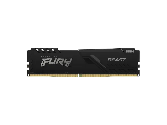Kingston FURY Beast DDR4 Memory The Kingston FURY™ Beast DDR4 provides a powerful performance boost for gaming, video editing and rendering with speeds up to 3733MHz1. This cost-effective upgrade is available in 2666MHz–3733MHz speeds, CL15–19 latencies, single module capacities of 4GB–32GB, and kit capacities of 8GB–128GB. It features Plug N Play automatic overclocking at 2666MHz1 and is both Intel XMP-ready and ready for AMD Ryzen. FURY Beast DDR4 stays cool with its stylish, low-profile heat spreader.