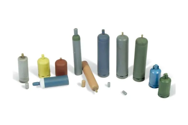 Eleven assorted gas bottles of different sizes and with great detail, including some units with separate covers which show the specifics of the valves.