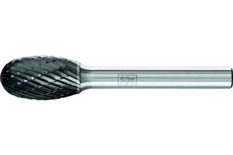 HEST FrässtiftTropfenförmiger Frässtift nach 8032 mit Kerbverzahnung nach 8033.GL = Gesamtlänge (Vollhartmetall), SL = Schaftlänge (Stahlschaft)