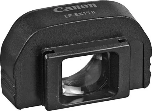 The Canon EP-EX15 II Eyepiece Extender provides a 5/8" (15mm) extension of the cameras eyepiece away from the camera body and reduces the camera's viewfinder magnification by 30%. It is particularly useful for eyeglass wearers and prevents a user's face or nose from touching the camera body or LCD display.