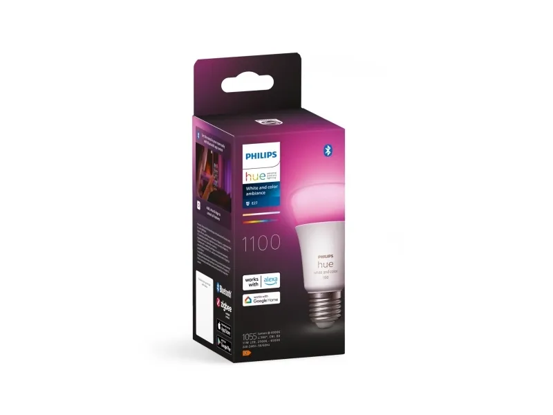 75 Watt Steuerung über Bluetooth und Bridge 16 Millionen Farben Alle Weißtöne Passt in alle Lampen mit E27-LampenfassungMit dieser smarten E27-LED-Lampe verzaubern Sie in wenigen Sekunden ein stimmungsvolles Licht in Millionen von Weiß- und Farbtönen. Diese Lampe, die für die meisten Lampen geeignet ist, ermöglicht eine smarte Beleuchtung überall in Ihrem Zuhause.