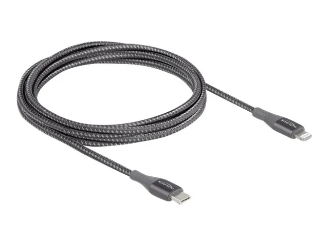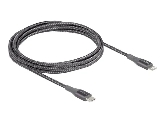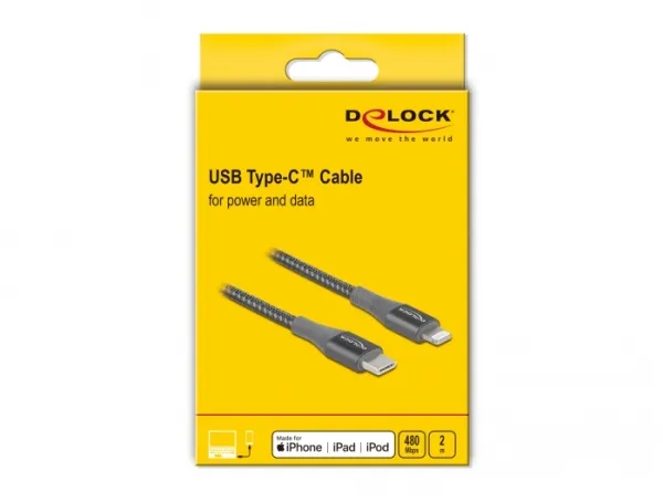 This USB data and charging cable by Delock can be used to connect an iPhone, iPad or iPod to a computer or laptop with USB Type-C or Thunderbolt 3 port, e.g. to a MacBook. The device is charged and data can be transferred. The connection between Apple and Android devices is also possible.