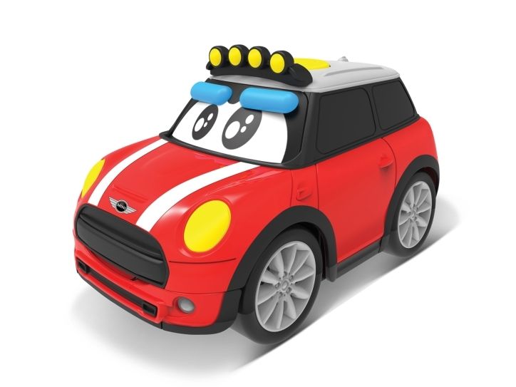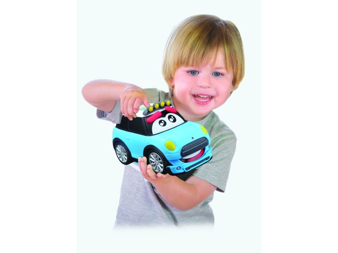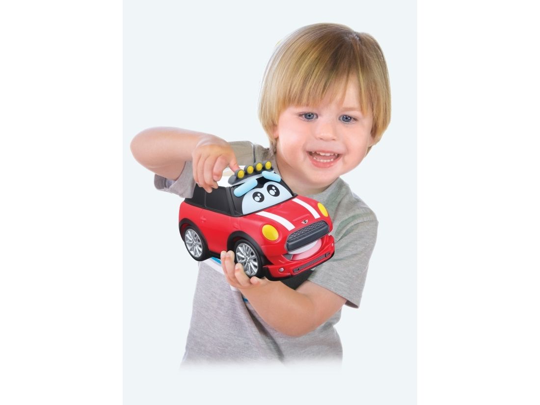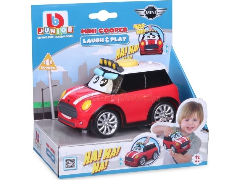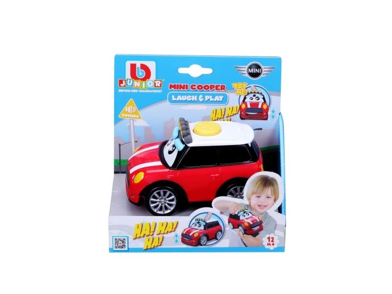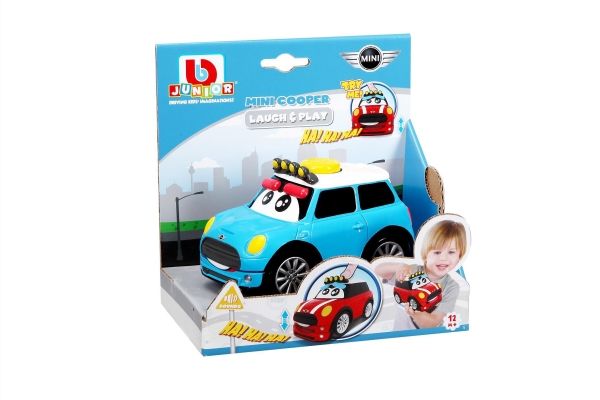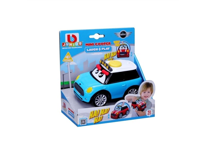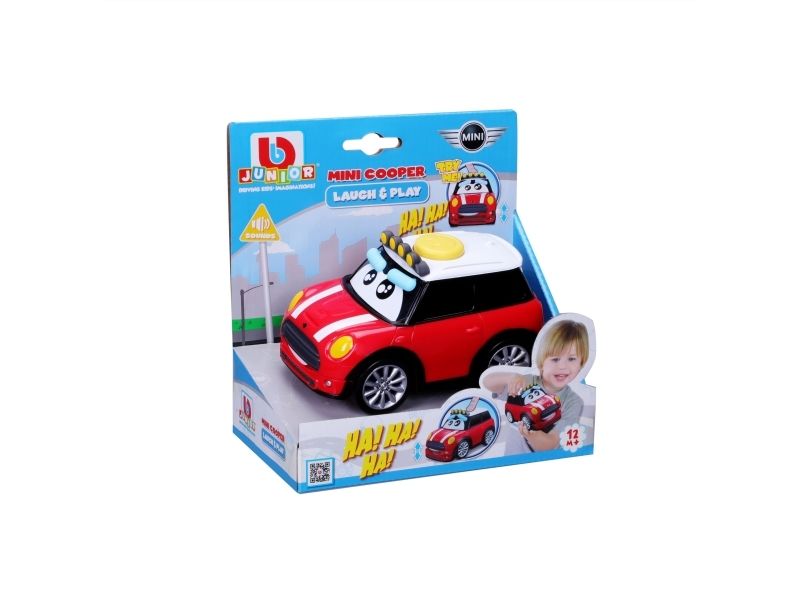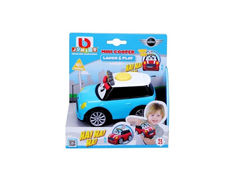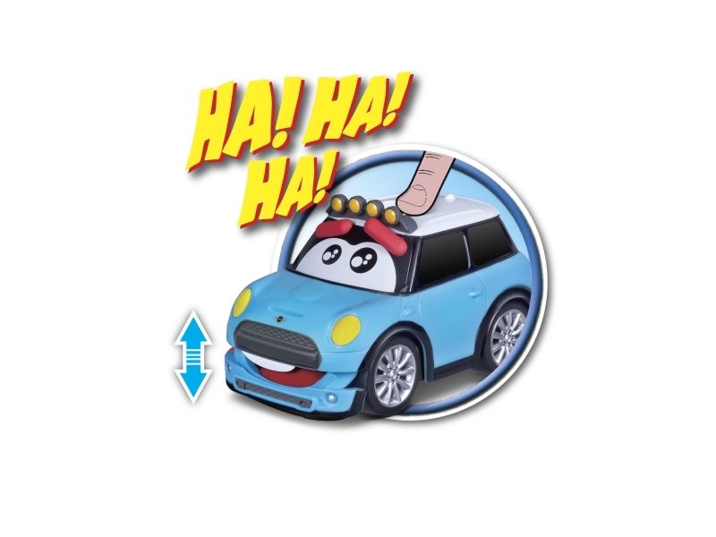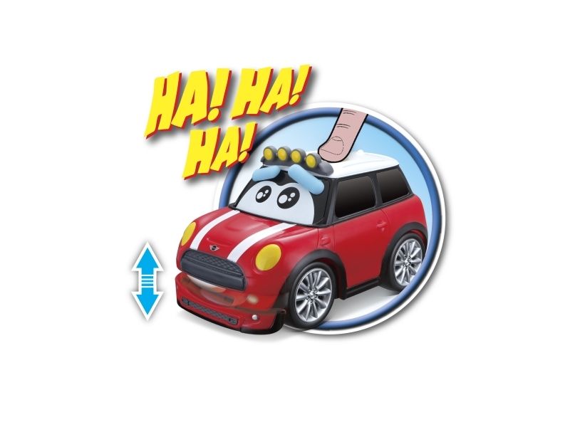 "Ha ha ha", lacht der Mini Cooper während der Fahrt. Ziehen Sie das Auto zurück und sehen Sie zu, wie es über den Boden saust. Drücken Sie den Knopf auf dem Dach, um das Auto zum Lachen zu bringen. Das Auto ist in den Farben Rot und Blau erhältlich und misst 13,5 cm. Benötigt 2 x AAA-Batterien (im Lieferumfang enthalten). Geeignet für Kinder ab 12 Monaten.