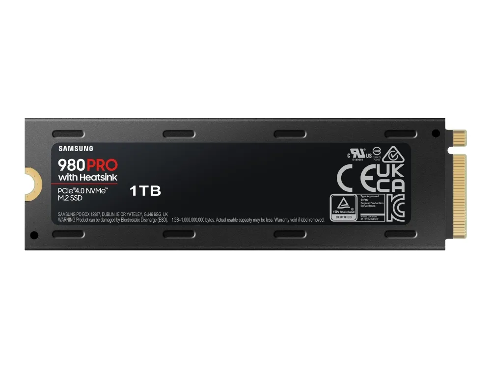 Smart thermal control Samsungs nickel-coated controller reliably manages NAND chip heat levels. The 980 PRO's heat spreader label allows thermal control access. The 980 PRO Heatsink uses proven data centre SSD technology to dissipate heat, for continuous high-performance gaming on most consoles and PC systems.