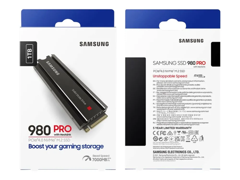 Next-level SSD performance Unleash the power of the PCIe® 4.0 NVMe™ SSD 980 PRO for next-level computing. The PCIe® 4.0 delivers 2x the data transfer rate of PCIe® 3.0 while staying backward compatible for total versatility. The added heatsink elevates speed, power efficiency and thermal control to maximise gameplay.
