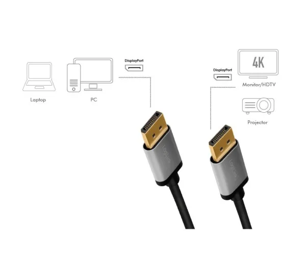 DisplayPort-Kabel, DP/M zu DP/M, 4K/60 Hz, Alu, schwarz/grau, 1 m