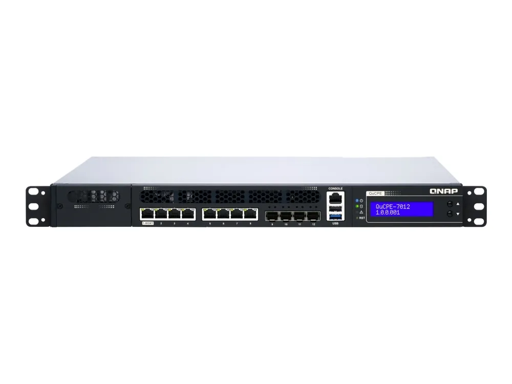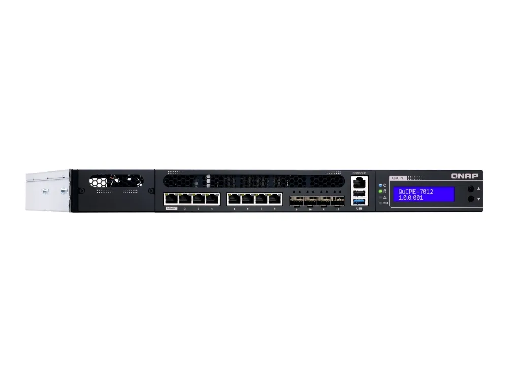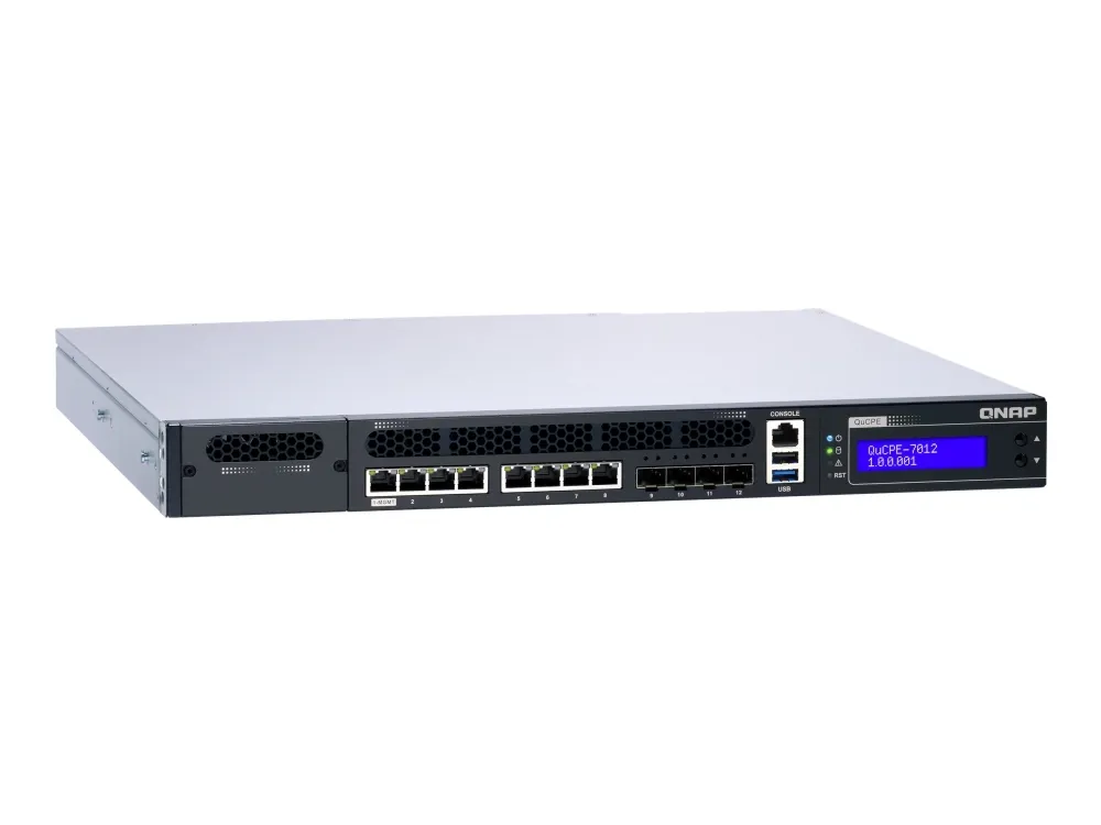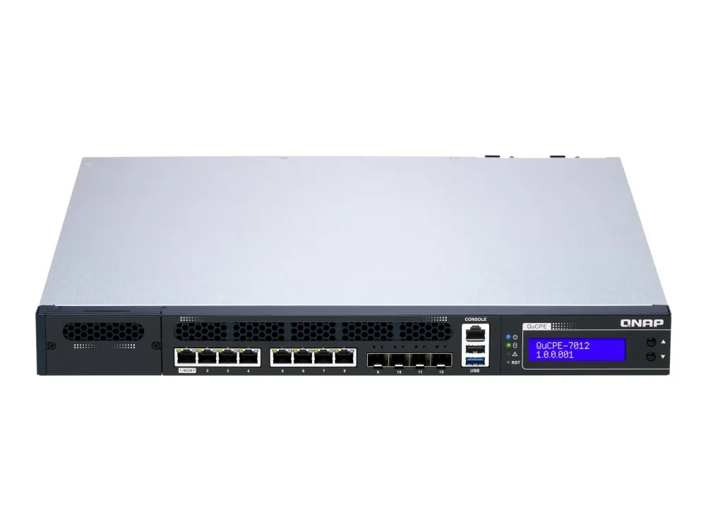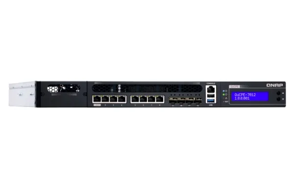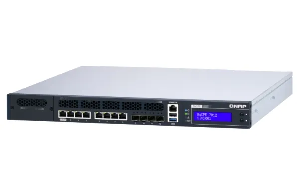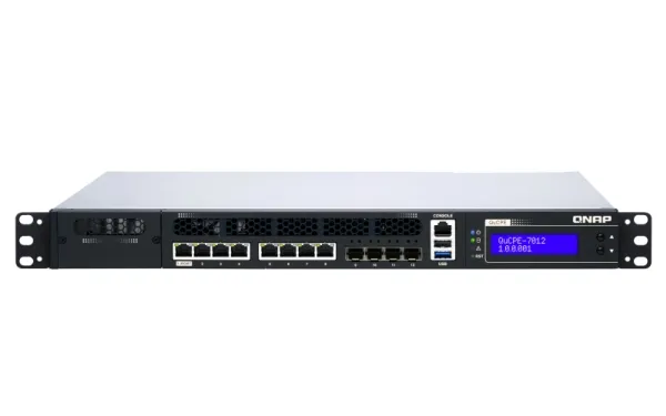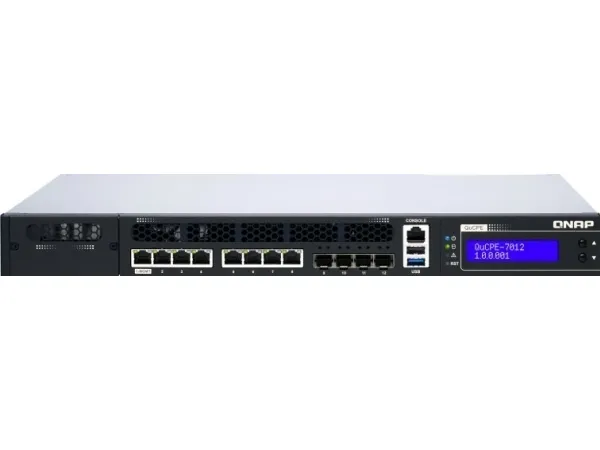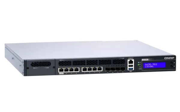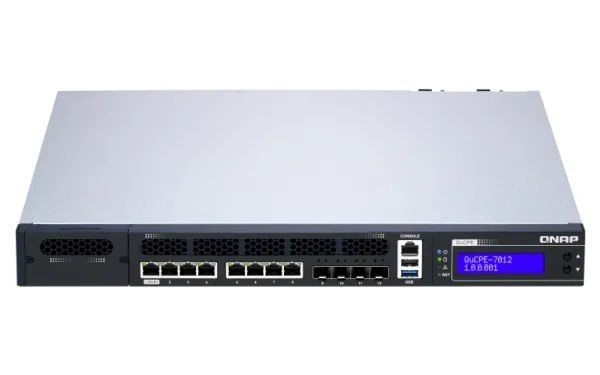 QNAP's QuCPE-7012 network virtualization premise equipment is a universal virtualization platform specifically designed for SMBs. The QuCPE-7012 adopts powerful Intel Xeon D multi-core processors that support Intel QAT, Smart NIC SR-IOV and DPDK hardware acceleration technologies and provides multi-port 2.5GbE, 10GbE, a network module slot and a PCIe slot for 25GbE/ 10GbE expandability. With enhanced bandwidth and computing performance for running multiple VMs and VNFs, the QuCPE-7012 is suitable for multi-user and multi-tasking business applications. The QuCPE-7012 also features the QNE (QNAP Network Equipment) OS for chaining VNF services and AMIZ Cloud centralized deployment and management platform to realize flexible Zero Touch Provisioning.