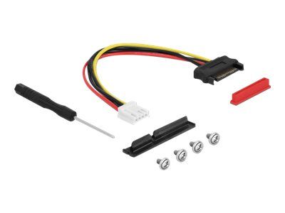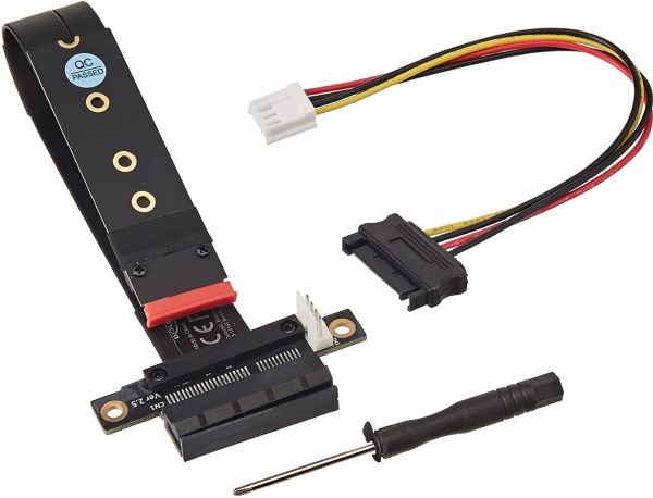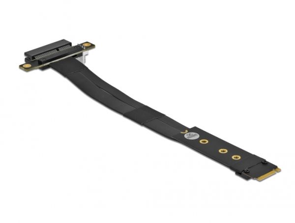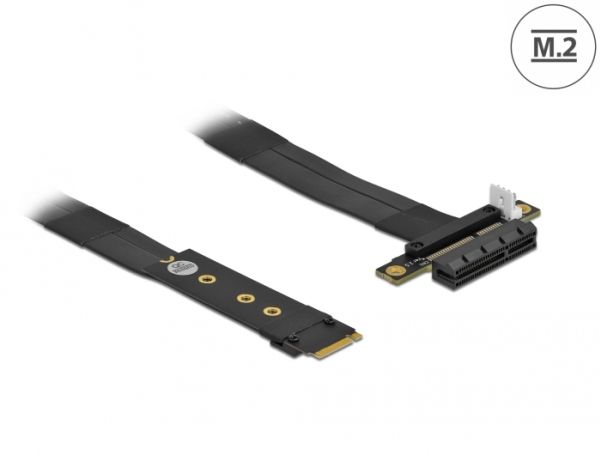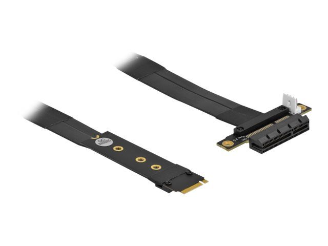 This adapter by Delock can be used to connect a PCI Express card to an M.2 slot. The flexible cable allows a space-saving installation inside the computer case. The additional power connector can supply the PCIe card with 12 V voltage if required.
