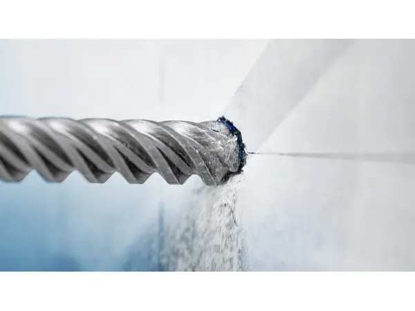 Drilling through reinforced concrete is a tough job and it has traditionally taken its toll on hammer drill bits. Even 4-cutters wear out fast, resulting in downtime changing accessories and fetching supplies. The Full Carbide Head on the EXPERT SDS max-8x is an advanced 4-cutter design made from a single piece of the toughest metal: It doesn't jam and presents no weakness on impact.