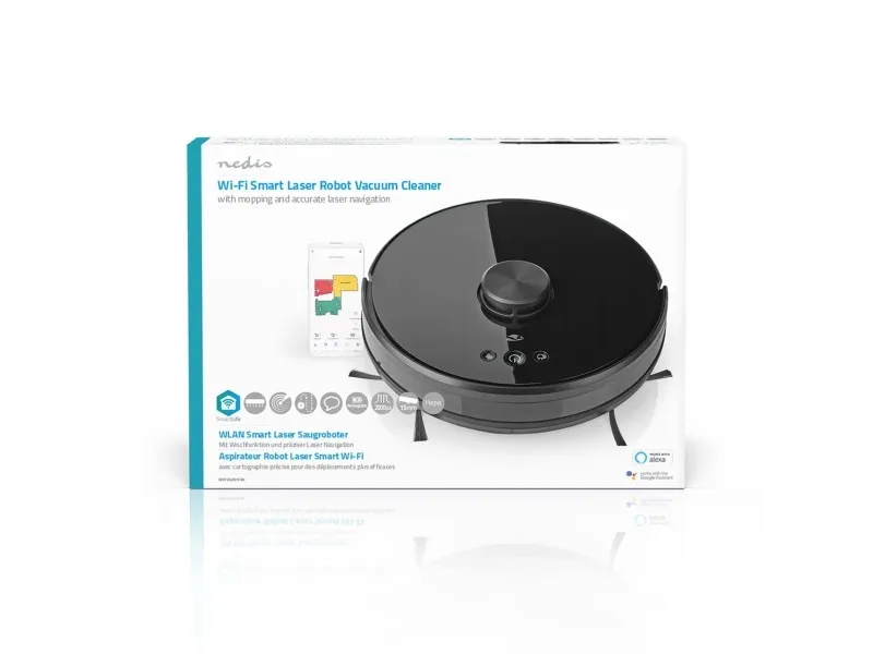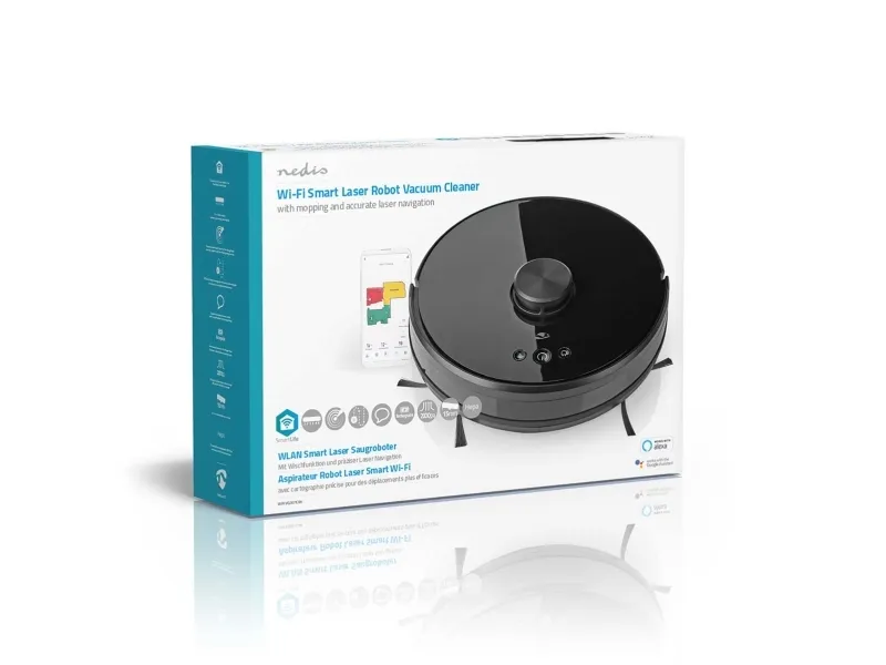 Dieser 3-in-1-Smart-Saug- und Wischroboter mit WLAN-Verbindung kann Ihr Zuhause kehren, saugen und wischen, während Sie etwas anderes tun oder sogar, wenn Sie nicht zu Hause sind. Verbinden Sie ihn einfach mit Ihrem WLAN-Heimnetzwerk und bedienen Sie ihn über die Nedis SmartLife-App (iOS und Android), die Fernbedienung oder die Tasten am Roboter selbst. Er unterstützt auch Sprachsteuerung mit Alexa und Google Assistant.