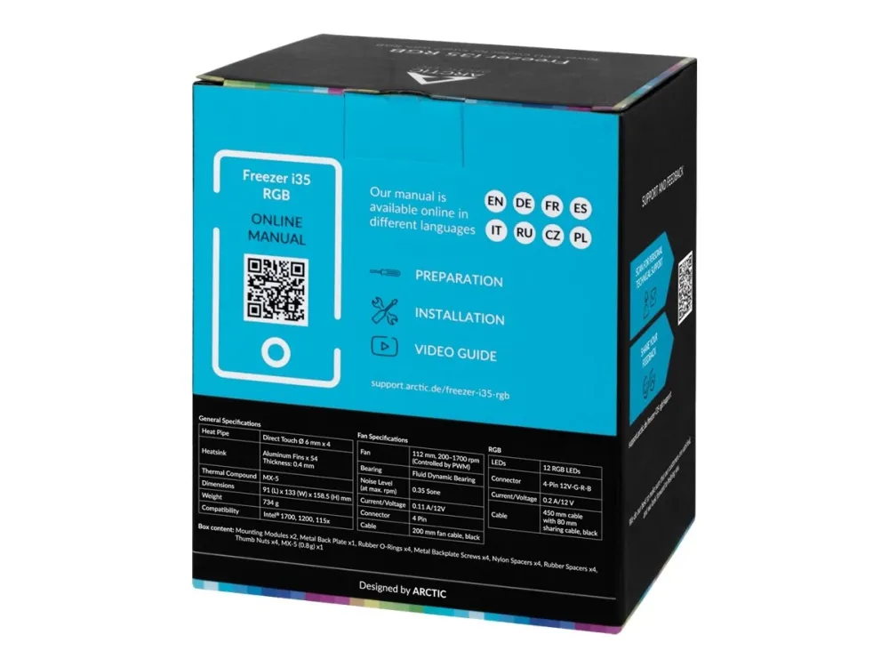 ARCTIC Freezer i35 RGB - Tower CPU Kühler für Intel mit RGB, Luftkühlung, 12 cm, 200 RPM, 1700 RPM, 0,35 Sone, Schwarz