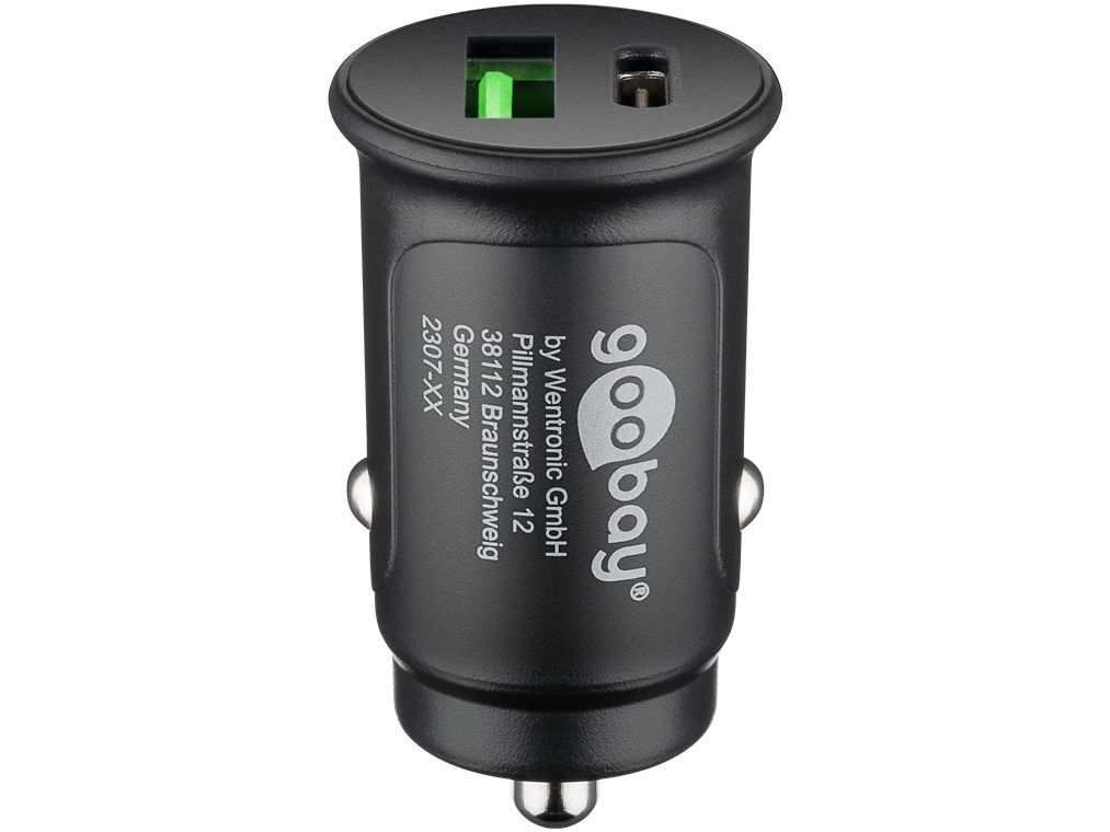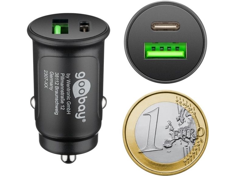 27W (12/24V) suitable for devices with USB-C™ (Power Delivery), such as iPhone 12 compatible with the following Apple iPhone models: iPhone 13 Pro, iPhone 13 Pro Max, iPhone 13 mini, iPhone 13, iPhone 12 Pro, iPhone 12 Pro Max, iPhone 12 mini, iPhone 12 iPhone 11 Pro, iPhone 11 Pro Max, iPhone 11, iPhone SE (2nd generation), iPhone XS, XS Max iPhone, iPhone XR, iPhone X, iPhone 8, iPhone 8 Plus Apple iPad models: 12.9" iPad Pro (4th generation), 12.9" iPad Pro (3rd generation), 12.9" iPad Pro (2nd generation), 12.9" iPad Pro (1st generation ), 11" iPad Pro (2nd generation), 11" iPad Pro (1st generation), 10.5"iPad Pro, iPad Air (4th generation), iPad Air (3rd generation), iPad (8th generation ), iPad (7th generation), iPad mini (5th generation) or Apple AirPods, AirPods Pro, AirPods with wireless charging case (Gen.2) The charger in mini format charges two devices simultaneously on the cigarette lighter via USB-A or USB-C™ charges up to 4x faster than standard chargers (from 0% to 50% in 30 minutes) Quick charger especially for Apple iPhone and iPad. Due to its extremely compact design, the charging adapter almost completely disappears in the cigarette lighter and turns it into a USB socket. It can be easily removed with the fingertips. Compatible with smartphones like Apple iPhone, Samsung Galaxy, Nokia, Xiaomi, Google Pixel, LG, Huawei, Blackberry, tablets like Apple iPad Pro / Air / Mini, Powerbank and external batteries Suitable for use in cars with 12V as well as in trucks with 24V input voltage An integrated protection electronics secures the connected devices and offers multiple protection against overcurrent, overload, overheating.