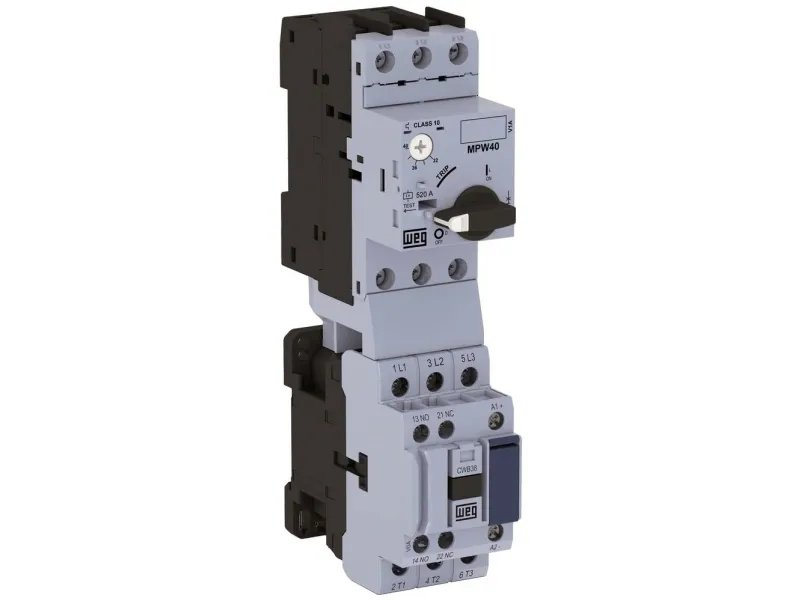 WEG-DIREKTE STARTER 230V ACWEG-Direktstarter 230V AC bestehend aus: Motorschutzschalter MPW40-3-C016 Anschlussadapter ECCMP-40B38 und Leistungsschutz CWB9-11-30D24 Optional (nicht im Set enthalten, muss separat bestellt werden) Fronthilfskontakt ACBF-11; frontseitig montierbarer Hilfskontaktblock BFB-11 a Frontseitig einklickbarer Überspannungsbegrenzer VRB E50