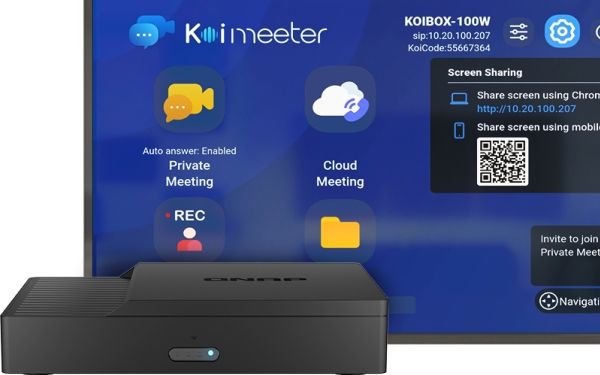 Running the KoiMeeter video conferencing operating system, the KoiBox-100W is the ideal replacement for costly SIP-based conferencing systems and features value-added 4K wireless projection, four-way communication, and local storage features. Creating private meetings with the KoiBox-100W provides higher security and privacy compared with public cloud meetings, and the auto-answering function provides greater convenience in certain usage environments. Besides private meetings, the KoiBox-100W streamlines communication between different platforms by allowing joining Zoom , Skype , Microsoft Teams , Cisco Webex , and Google Meet calls.
