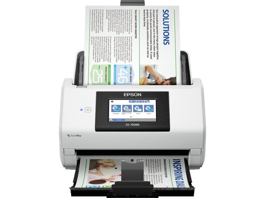 ScanWay – Standalone-Scannen Leiten Sie gescannte Dokumente mit dem 10,9 cm großen Farb-Touchscreen direkt an das richtige Ziel weiter, ohne dass Sie sich mit einem Computer verbinden müssen. Scannen Sie direkt auf Netzwerk- und Cloud-Ordner, an E-Mail-Adressen oder auf USB-Speicherstick.