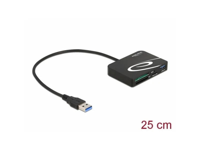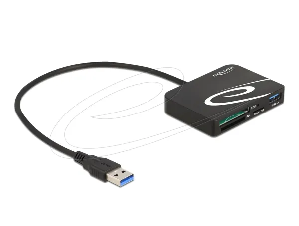 The card reader by Delock can be used for reading and writing XQD, SD and Micro SD memory cards. The card reader can be connected to a PC or laptop via the USB Type-A interface.