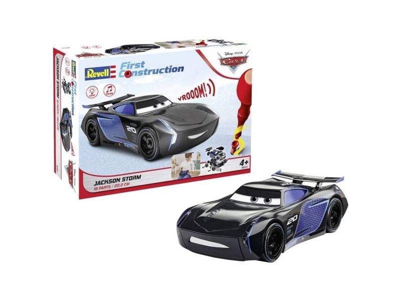 Tiefer gelegt, technisch perfekt getunt und extrem ehrgeizig ist Jackson Storm der ärgste Rivale von Lightning McQueen. Der Zusammenbau dieses kindgerechten Bausatzes aus 19 Einzelteilen macht nicht nur Spaß, sondern garantiert auch jedem Filmfan ab 4 Jahren ein tolles Erfolgserlebnis. Und nach dem Zusammenschrauben: Coole Licht- & Sound-Effekte sorgen für echte Rennatmosphäre im Kinderzimmer. Länge ca 20 cm.