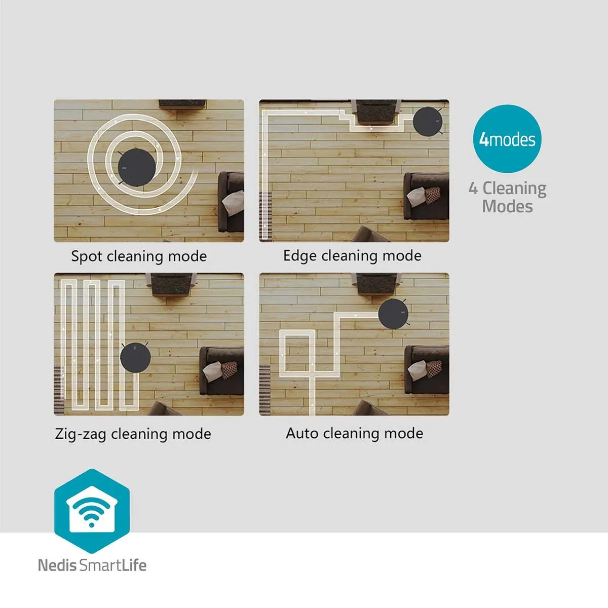 You can set up a daily or weekly cleaning schedule or send it directly to a specific spot in your home. For easy direct control, this vacuum cleaner also comes with remote control. But by combing it with other smart products in the Nedis SmartLife app you can also set automation, so the vacuum cleaner automatically starts cleaning after you have left your home, or after switching off the lights at night.