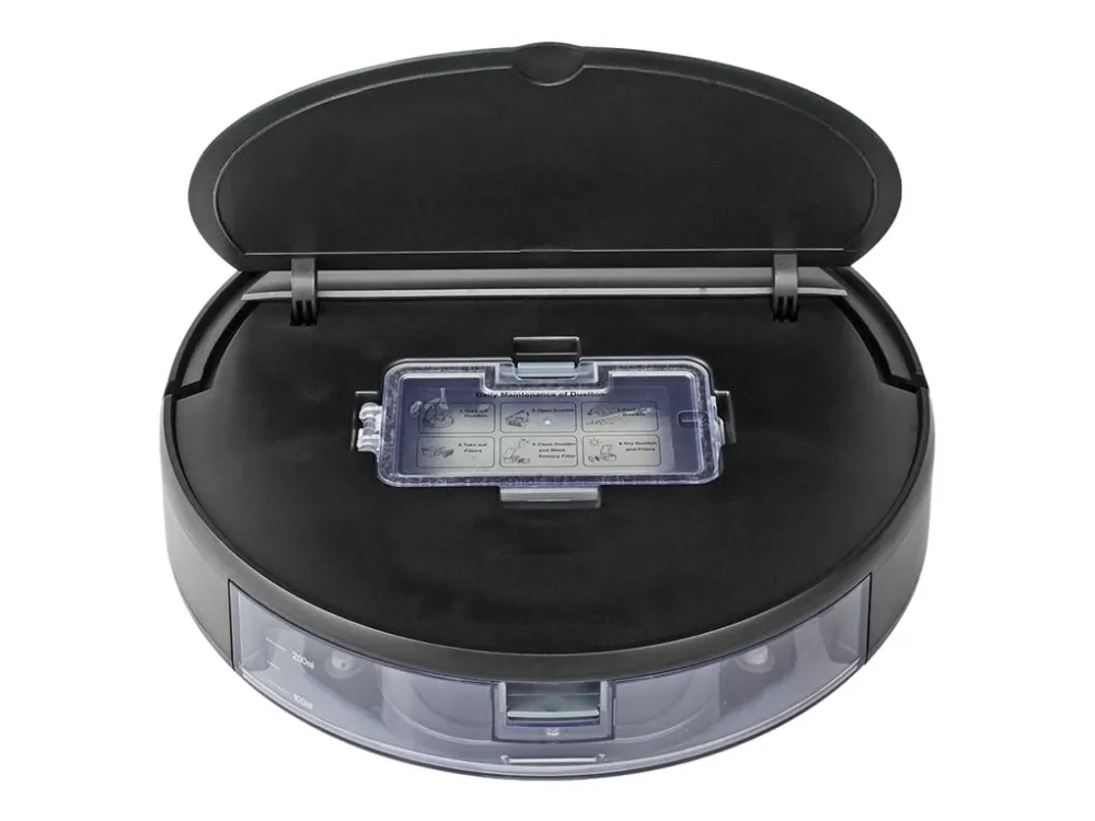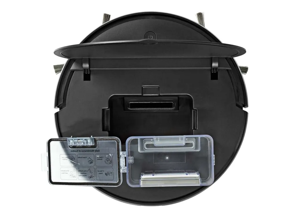 The two brushes on the edge sweep past the walls and other objects to collect dust and debris and direct everything to the center where it is sucked up, thanks to the 1400 Pa strong brushless motor. The sensors detect when there is a wall or obstacle or a drop (staircase). When it's finished, or when the battery runs empty it will automatically go back to the charger to charge itself so it is always ready for the next job. The robot cleaner has a HEPA filter that removes all fine particles from the air, which means you will suffer less from allergies. The powerful Li-ion battery means that the robot cleaner can operate without interruption for 90 minutes and is recharged quickly.