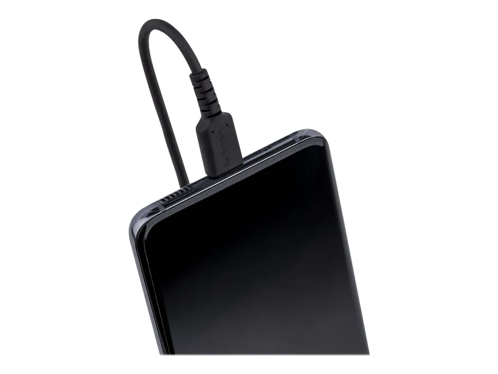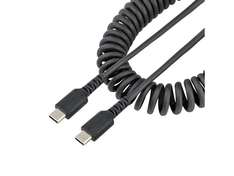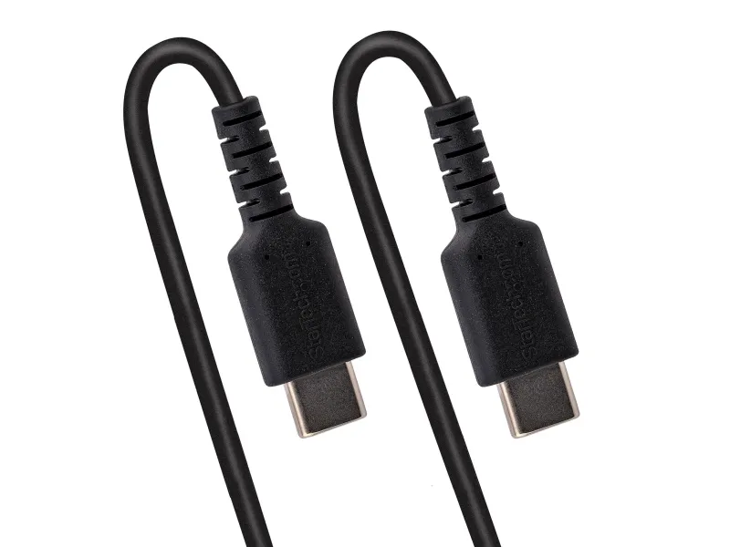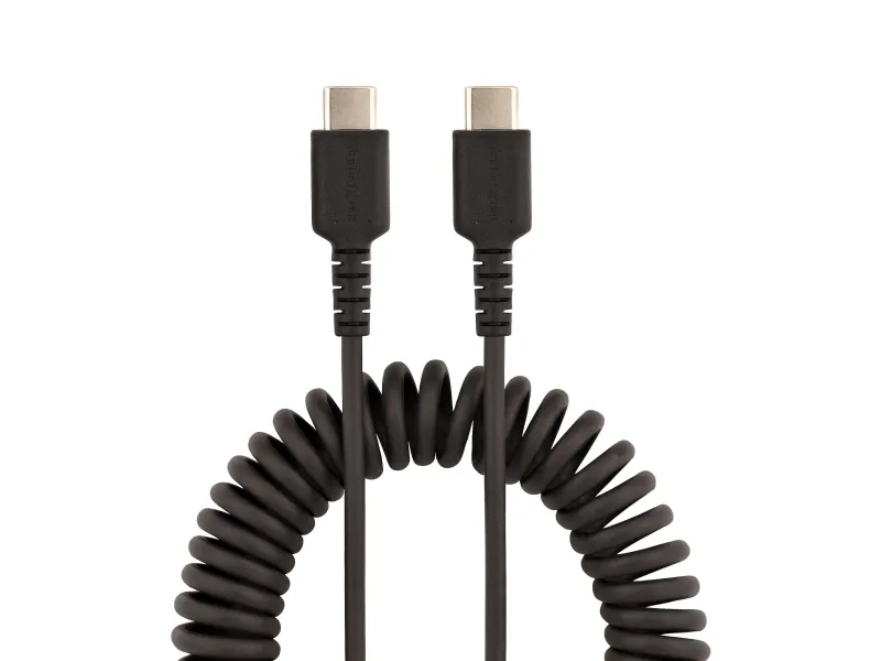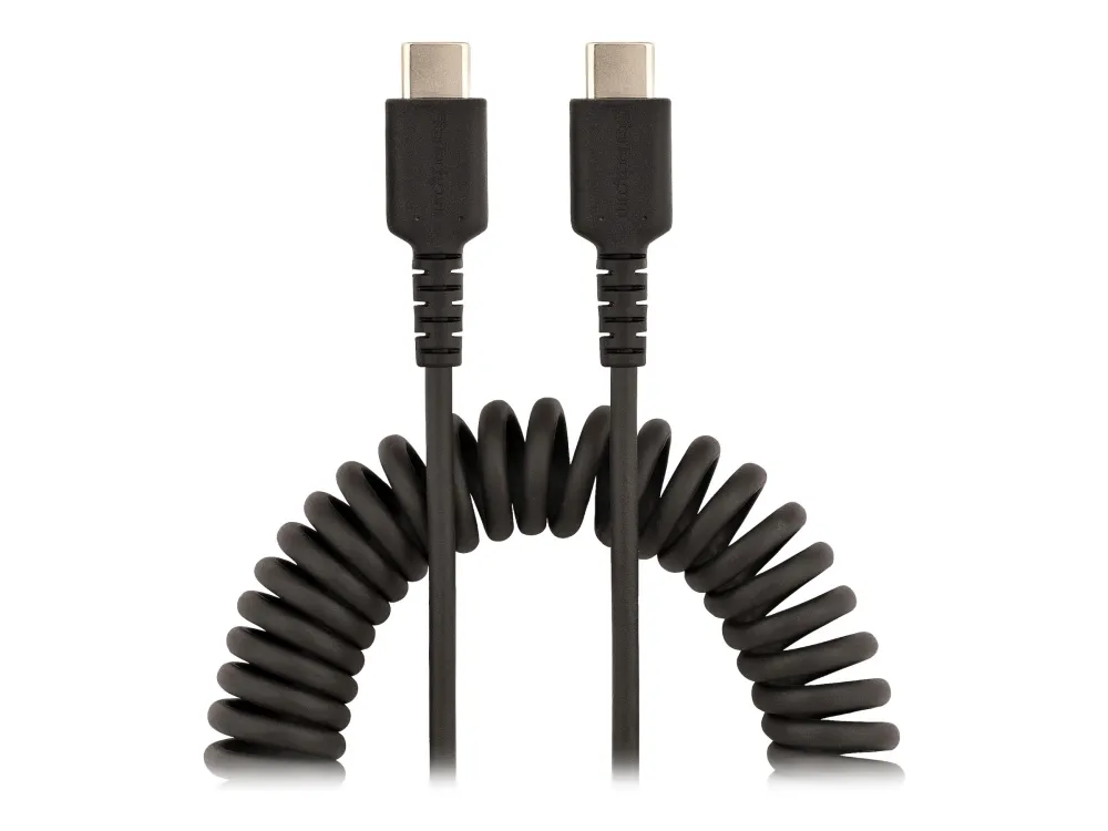 StarTech.com 50cm USB C auf USB C Kabel, hochbelastbares Spiralkabel zum Laden und Synchronisieren, USB C 2.0 Kabel, robuste Aramidfaser, Schnellladekabel mit EMI Schutz, schwarz, 0,5 m, USB C, USB C, USB 2.0, 480 Mbit/s, Schwarz