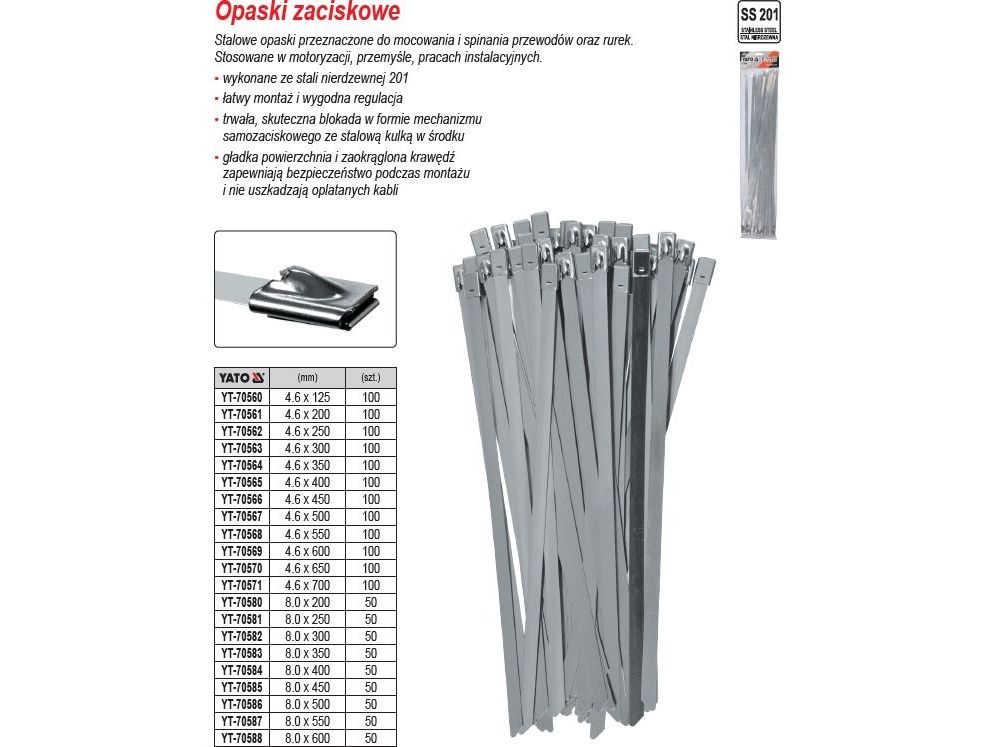 YATO Crimp-Klemmen aus Edelstahl 4,6x300 mm /100 Stk.
