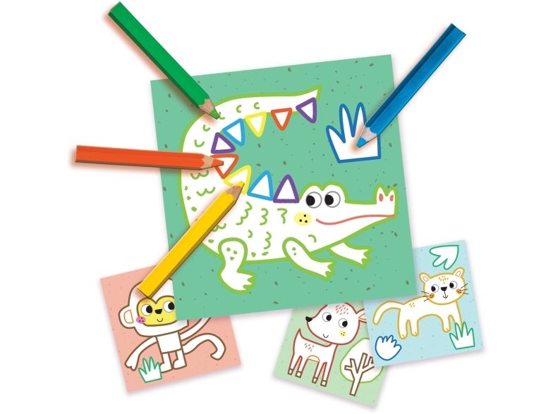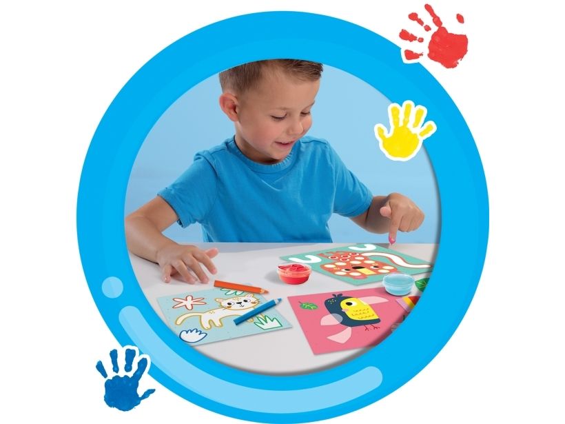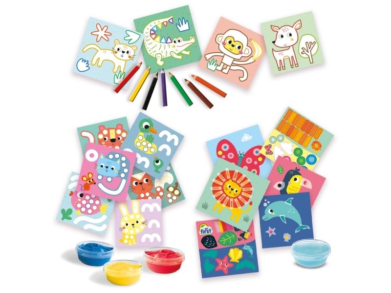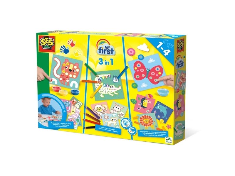 SES Creative My First - 3 in 1 Fingerfarben, Ausmalen und Formen kleben, Farben enthalten, Junge/Mädchen, Bleistifte enthalten, Bilder-Set zum Ausmalen