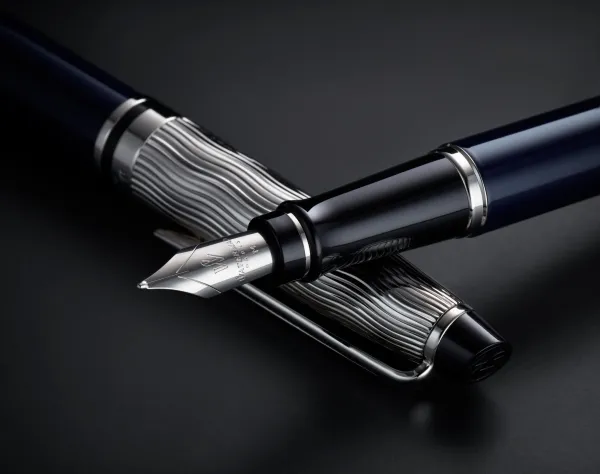 A symbol of ambition and success, the L’essence du bleu Expert fountain pen is finished in a vibrant, deep blue lacquer with Waterman’s signature wave pattern chiselled into the metal cap. The stainless steel fountain pen nib features the looped W Waterman design. Each luxury pen is crafted in France and presented in a premium Waterman gift box. Comes with a 2-year international warranty, which may be extended to 4 years with registration.