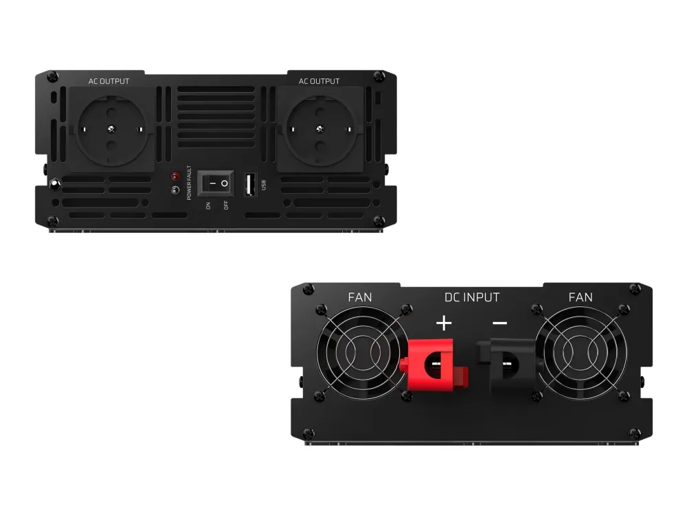 Inverter is a device which changes a direct current voltage from the car accumulator or car ligter into an alternating current ~230V. Exactly the same signal is in every power plug (Type F) in Europe. Inverter is an excellent choice for everyone who travels by car, camper or a truck. It will be perfect in places without direct access to power plugs.