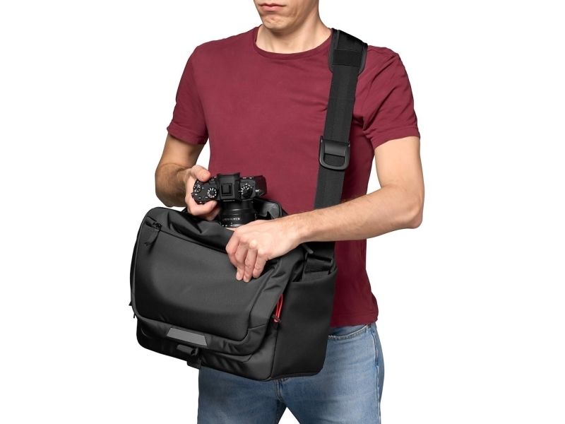Diese Tasche ist ein Beispiel für Komfort und Bequemlichkeit bei schnellen Aufnahmen. Die Advanced Camera Messenger M III für DSLRs und CSCs gibt dir alles, was du brauchst. In diese Tasche passt eine große Menge an Ausrüstung für die Anforderungen eines jeden Drehs. Die Tasche bietet Platz für Kameras und Objektive sowie ein kleines Stativ, das mit zwei innenliegenden Bungee-Kabeln befestigt wird.
