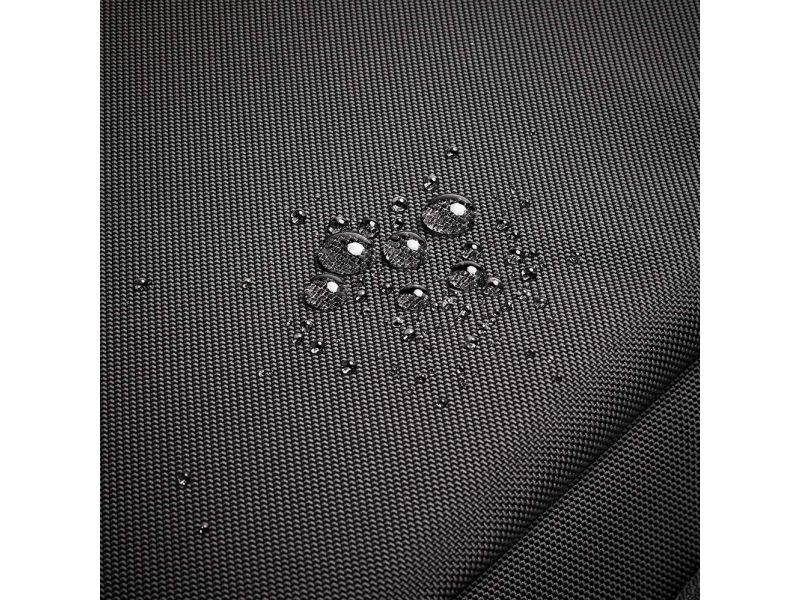 Alle äußeren Materialien sind behandelt, was die Tasche wasserabweisend macht, was durch die mitgelieferte Regenhülle bei widrigen Wetterverhältnissen noch verstärkt werden kann.