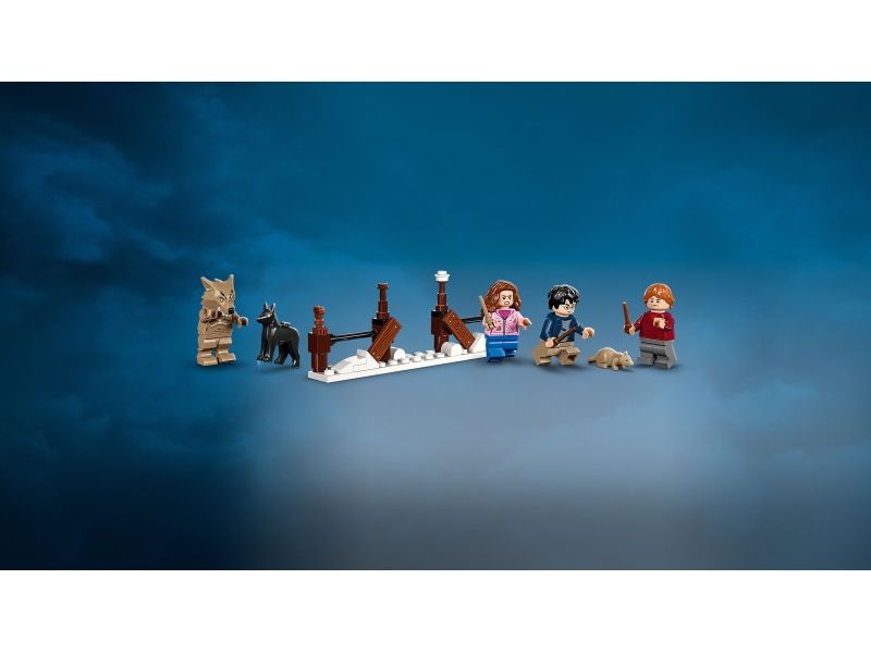 Magische Funktionen: Die Peitschende Weide kann sich umdrehen, und ihre Äste biegen sich, um Minifiguren zu schlagen und zu greifen. Sobald der Vollmond leuchtet, verwandelt sich Professor Lupin in einen Werwolf