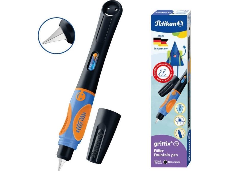 Der Füller ist die 4. Stufe des vierstufigen griffix® Schreiblernsystems - die Königsklasse beim Schreibenlernen. Mit dem Füller lernen die Kinder das formgerechte Schreiben und optimieren die flüssigen Schreibbewegungen. Die druckstabile Edelstahlfeder für Schreibanfänger gleitet dabei leicht über das Papier und hinterlässt ein schönes und sauberes Schriftbild. Das große Tintensichtfenster des Füllerhalters bietet optimale Kontrolle des Tintenstandes.