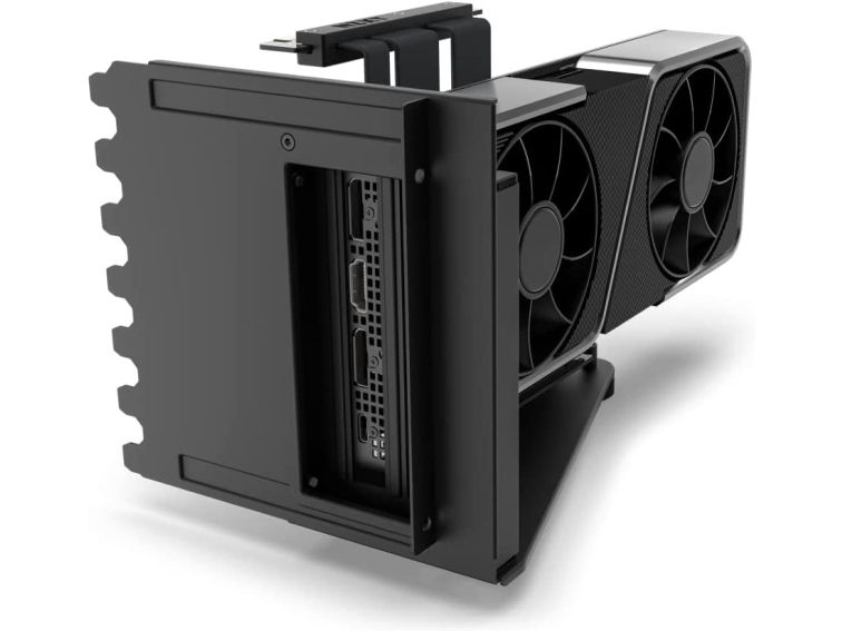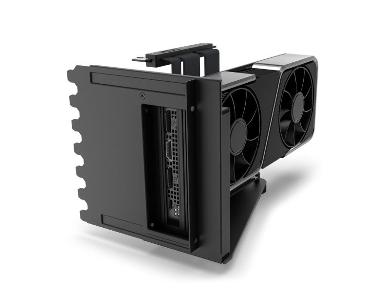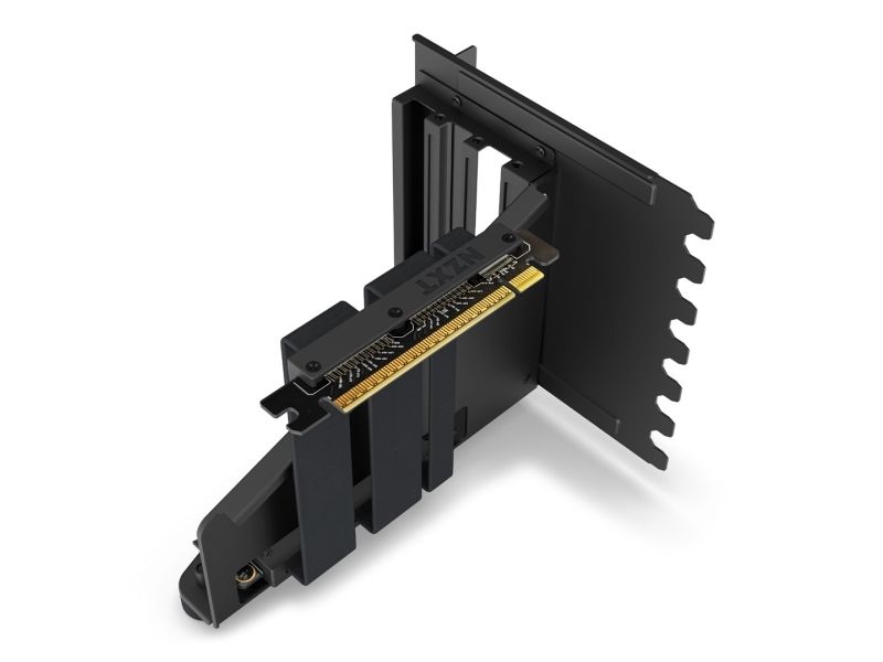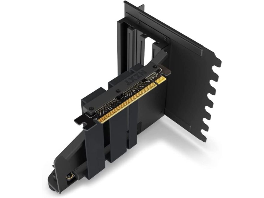The NZXT H7 Series GPU bracket kit offers a practical solution for vertical GPU mounting. Crafted from steel, this bracket ensures stability and reliability, allowing for optimal airflow and aesthetics in any build. The kit includes a vertical GPU bracket and a PCI-e riser cable, providing everything needed for a neat and organized installation. Elevate your gaming setup with a design that enhances the visual appeal of your components while ensuring a secure and efficient configuration.