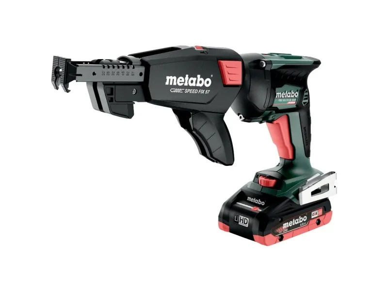 With screwdriver magazine for fast driving in of screws in series All Metabo drywall screwdrivers can be equipped with the robust screwdriver magazine SM 5-55. Standard 50-screw strips in common dimensions can be used. Fast and precise screwdriving in series is very well possible with this magazine attachment. Using such a cordless magazine screwdriver, the gypsum boards are screwed together even faster.