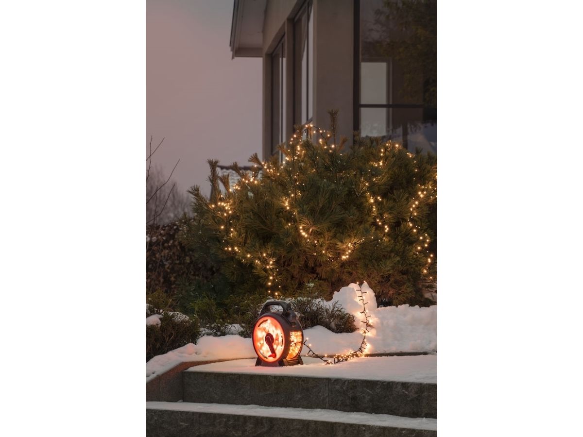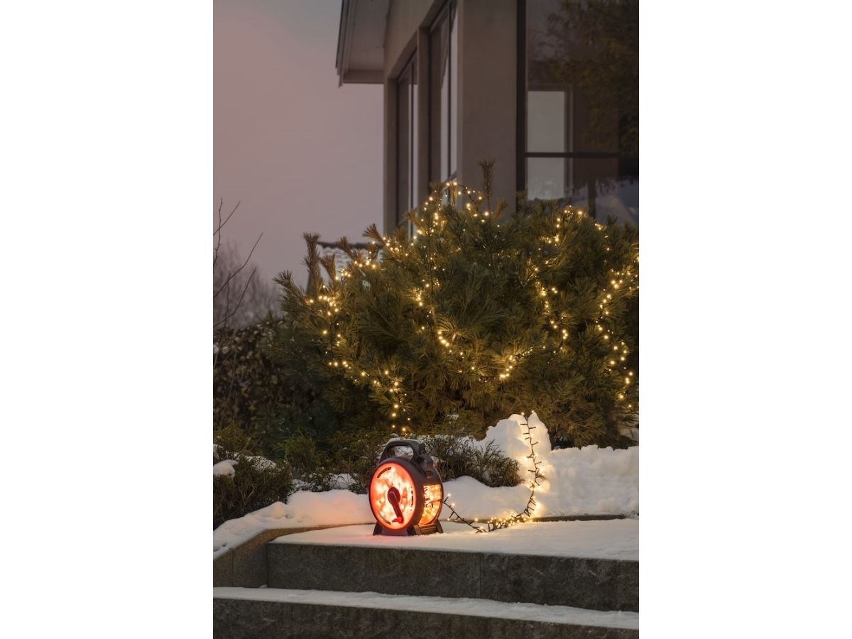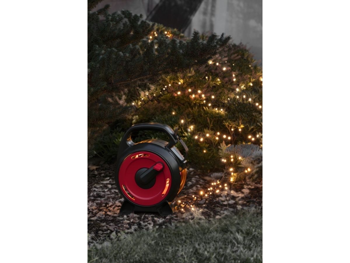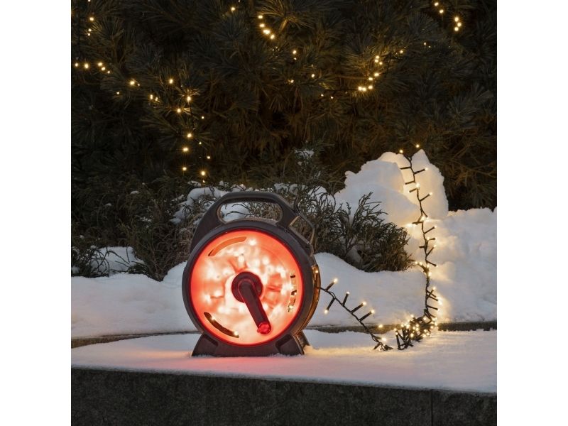 Micro LED-lyskædeHvem kender det ikke? Når helligdagene er ovre, kommer den irriterende granatudsmykning af juletræet. Men hvordan ruller man lyskæden sammen igen, uden at den filtrer sammen? Udnyt vores mikro-LED-lyskæde og det praktiske, medfølgende Konstsmide-oprulningssystem. Bare sæt begyndelsen på lyskæden i plastikøjet, og rul lyskæden op til strømstikket med en arm. Ud- og indrulning bliver legende let og sørger for en pladsbesparende og sikker opbevaringsmulighed for lyskæden. Lyskæde samt oprulningssystem kan anvendes indendørs og udendørs. Konstsmide har i mere end 40 år specialiseret sig i at lave førsteklasses lysdekorationer til indendørs og udendørs brug og har siden 1999 været toneangivende inden for miljøvenlige, holdbare og sikre LED-løsninger.