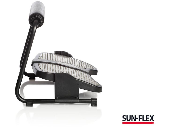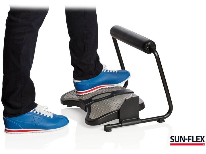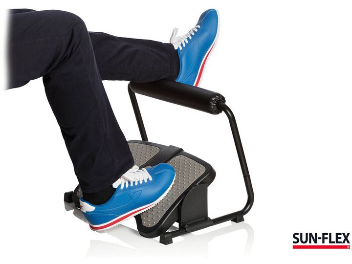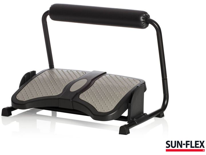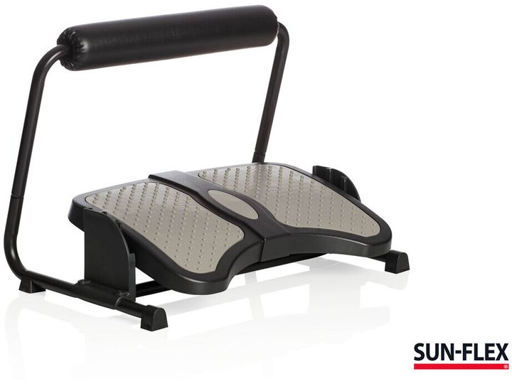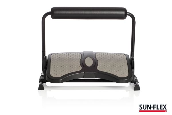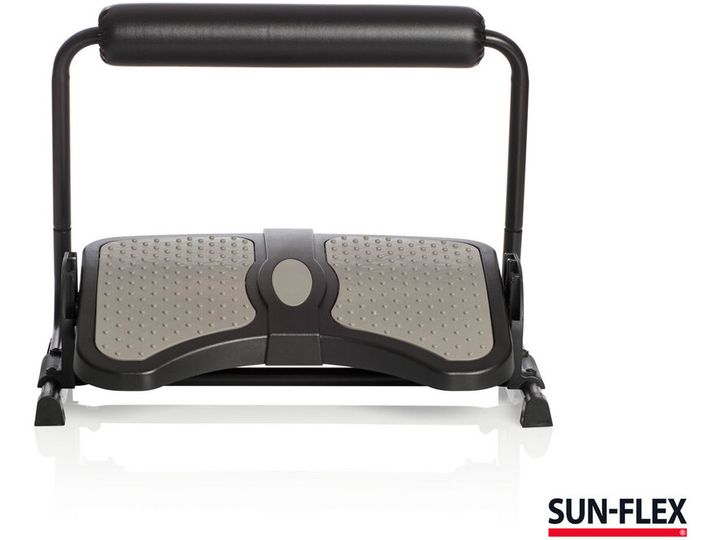 SUN-FLEX®Footrest yder god og fleksibel støtte, uanset om du arbejder stående eller siddende. Den store fodplade er stabil og skridsikker. SUN-FLEX®Footrest har et unikt design, som gør fodstøtten til en af de mest innovative løsninger på markedet. Ved at justere fodpladens højde og vinkel får du god træning af de nedre ekstremiteter, og du forebygger trombose og øger blodcirkulationen. SUN-FLEX®Footrest kan enkelt vinkles med foden, så du får den ønskede hældning, og højden kan justeres i tre niveauer. Benyt også den unikke mulighed for at strække benene, samtidig med at du har en god kropsholdning takket være den vatterede støtte på overdelen.