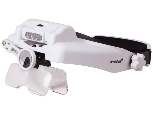 Levenhuk Zeno Vizor Magnifiers are wonderful assistants in your work and hobby! This model features interchangeable lenses with different magnification power and LED lights. Useful LED illumination is powered by batteries; if you do not use it, you can turn it off. The light angle is adjustable. The headband is extendible; you can easily adjust it to your head. Its main feature is that you do not have to hold the magnifier with your hands thereby keeping them completely free for doing work! This magnifier is permanently located in front of your eyes and pointed at the working area.