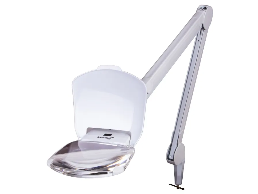 Levenhuk Zeno Lamp ZL19 LED Magnifier is a practical working tool for a home workshop, craft room, or service center. Due to a bracket that consists of several sections, you can fix a magnifier in different positions and turn the lens at different angles. The magnifier features 2x magnification. It has a sturdy design and delivers a high-quality image. The magnifier is attached to surfaces with a screw clamp. It can be fixed on a border of a table or on a shelf.