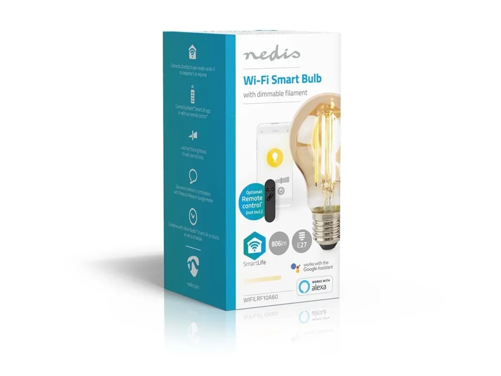 Kombinieren Sie moderne Technologie mit einer klassischen dimmbaren Filament-Glühlampe. Sie können die Helligkeit der Lampe mit der Nedis® SmartLife-App regeln oder die Lampe mit Google Home oder Amazon Alexa verbinden, um sie mit Ihrer Stimme zu steuern. Für mehr Komfort können Sie auch die Smart-Fernbedienung verwenden, um das Smart-Leuchtmittel einfach ein- und auszuschalten oder die Helligkeit anzupassen.