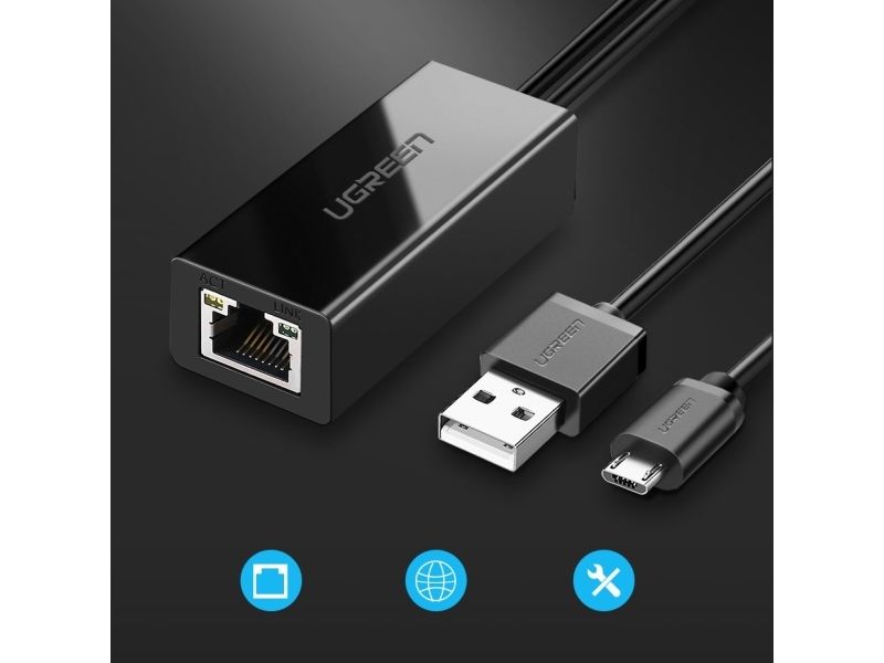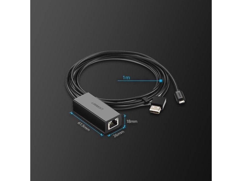 The Ugreen Micro USB to RJ45 Lan Network Adaptor with USB 2.0 Power Cable is a versatile and efficient solution for connecting your devices to the Internet. With a data transfer rate of 100 Mbps, it supports Ethernet, making it suitable for a variety of online activities. The adaptor is designed for ease of use, featuring a USB 2.0 interface for compatibility with a wide range of devices and including both USB power and micro-USB cables for flexible power options. Its compact, external form factor and integrated cable management system ensure a clutter-free setup, making it an ideal choice for both home and office use.