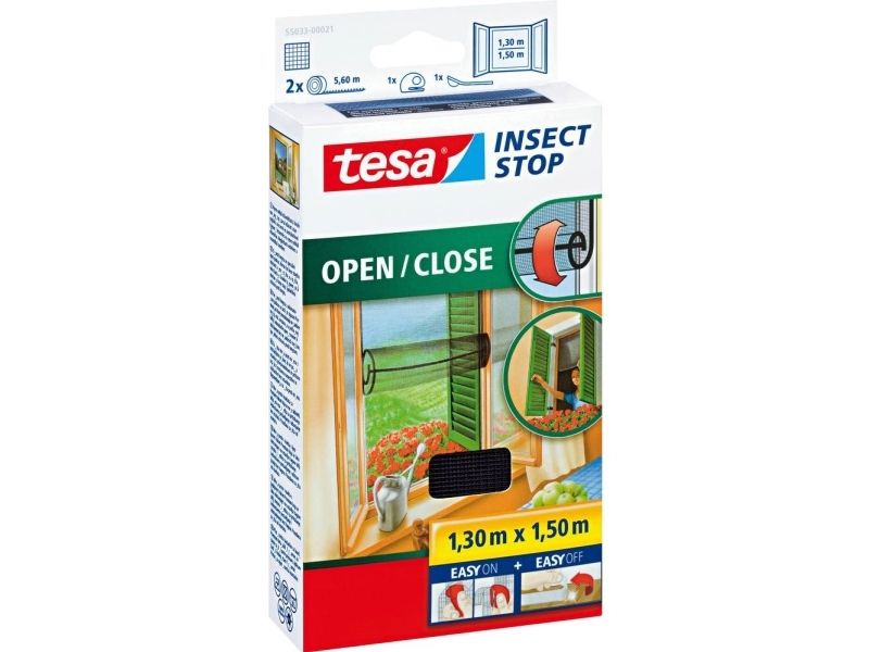 Das hochwertige tesa® Insect Stop Fliegengitter zum Öffnen und Schließen ist eine echte Alternative zu einem Insektenschutzrollo und bietet einen flexiblen Schutz vor Insekten. Ebenso wie bei einem Fliegenschutzrollo haben Sie bei diesem Fliegengitter die Möglichkeit, das Fenster komplett zu öffnen, z.B. um die Pflanzen in den Blumenkästen zu gießen. Im Gegensatz zu einem handelsüblichen Insektenschutzrollo lässt sich das feinmaschige Gitternetz von tesa® ohne die Hilfe von Werkzeugen befestigen. Die Powerstrips®-Technologie sorgt auch dafür, dass sich das Gewebe rückstandslos wieder ablösen lässt.