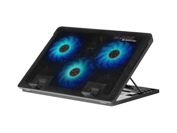 Defender NS-501. Maximum screen size: 43.2 cm (17"), Number of built-in cooling fans: 3 pc(s), Fan diameter: 11.3 cm. Product colour: Black, Material: Metal, Plastic, Illumination colour: Blue. Host interface: USB. Power source type: USB, Input voltage: 5 V, Power consumption (max): 3.75 W. Cable length: 0.47 m, Width: 361 mm, Depth: 264 mm