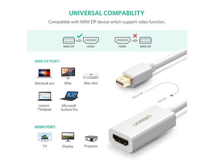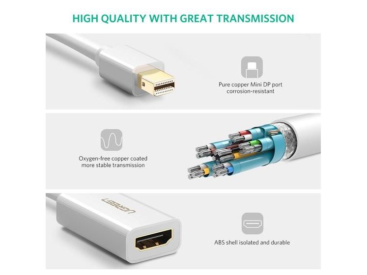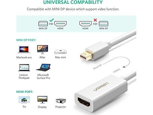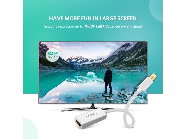 This Ugreen converter can seamlessly connect your device with a Mini DisplayPort to your HDTV, projector, or LCD to enjoy the quality audio and video from your home theater. The special aluminum case enhances its anti-interference performance.