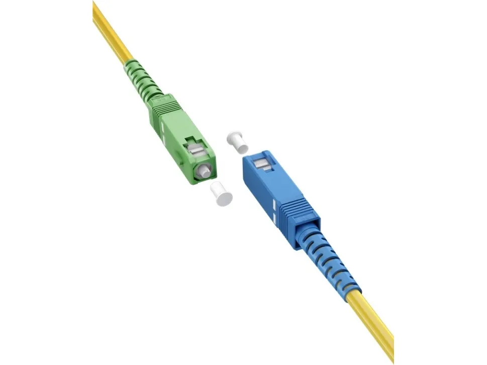 SC-APC (8°) Stecker > SC-UPC Stecker, halogenfreier Kabelmantel (LSZH), Lichtwellenleiter (LWL) Kabellänge Glasfaserkabel Monomode konzipiert für Anschlussarten wie FTTH, FTTB, FTTx und den Einsatz zu Hause, im Büro, in Rechenzentren etc. als Rangierkabel bildet es die Verbindung zwischen Hausübergabepunkt (HÜP) und Glasfasermodem (ONT) im Innenbereich Lichtwellenleiterkabel für bis zu 100 Gbit/s ist biegeoptimiert und platzsparend mit einem minimalen Biegeradius von 30 mm (statisch) LSZH-konform: Kabelmantel ist halogenfrei und schwer entflammbar gemäß IEC 60754 2, IEC 60332 1 und IEC 61034 mit Aramidgarn verstärkte Zugentlastung sorgt für besondere Stabilität ausgestattet mit Staubschutzkappen, Stecker: Simplex, Faserart: OS2, SM Singlemode 9/125µm gemäß ITU-T G.657.A2 individuelles Testprotokoll mit Messung von Return Loss (Rückflussdämpfung) und Insertion Loss (Einfügedämpfung)