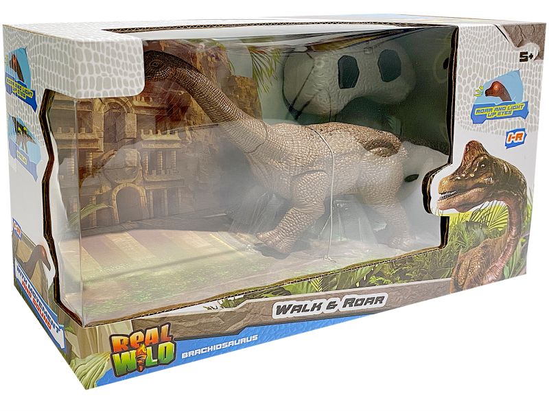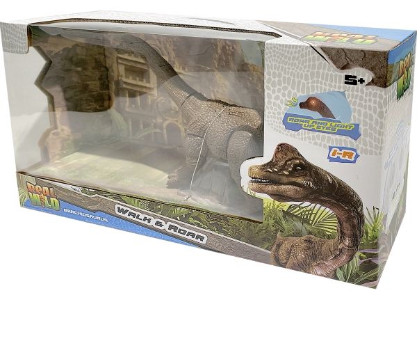 Excl. 5 x AAA batteries Age 5+ REAL WILD, IR Brachiosaurus Dinosaur with light, sound, forward movement, and an auto function. Brachiosaurus - The Arm-Lizard or just long neck! Age 5+