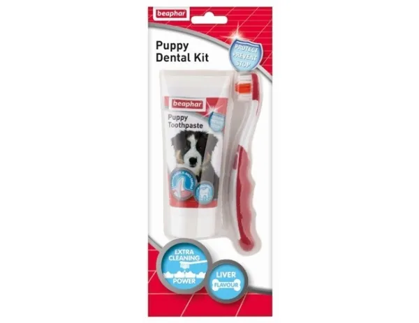 Beaphar Welpenpackung mit Zahnbürste und Zahnpasta Kann für alle Welpen verwendet werden Beaphar Puppy Dental Kit enthält alles, was Sie brauchen, um für die Gesundheit des Welpen und die Notwendigkeit einer guten täglichen Mundhygiene zu sorgen Beaphar Dental Creme mit 2 aktiven Enzymen und Lebergeschmack. Enthält Steine, die Plaque und Schimmelpilze abbauen, was zu einer gesünderen Atmung führt. Der großartige Lebergeschmack sorgt dafür, dass Hunde und Katzen es lieben. Die Enzyme wirken auch dann noch, wenn Sie mit dem Zähneputzen aufhören. Die Zahnbürste hat einen weichen und bequemen Griff und ist für die meisten Welpen recht klein. Die Bürste ist so konzipiert, dass sie die Mundhöhle sauber und trocken hält. Beaphar Welpenzahnbürste und Zahnpastapackung